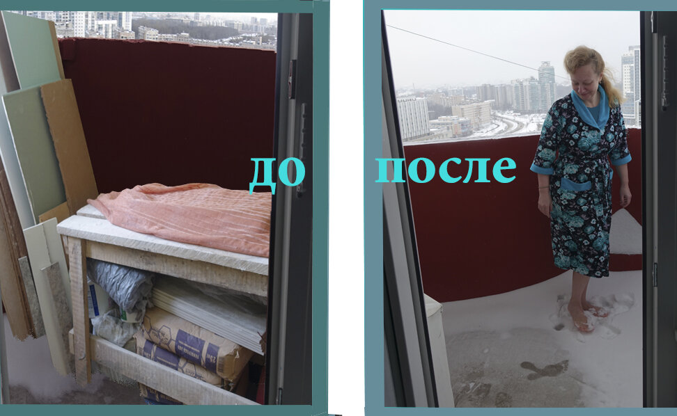 Мы уговорили Тоню провести инвентаризацию. Результат был поразительным. Освобождённый от хлама балкон преобразился. Оказалось, что это не склад, а дополнительная комната, где можно зимой принимать бодрящие воздушные ванны, наблюдать за снегопадом, птицами и плывущими облаками.