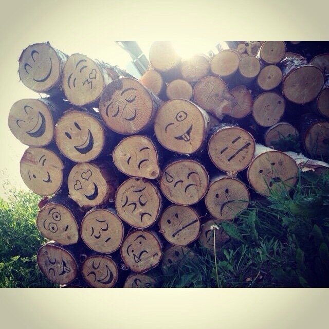 Поленница с нашей дачи, которую я разрисовала. Фотография из личного архива автора.