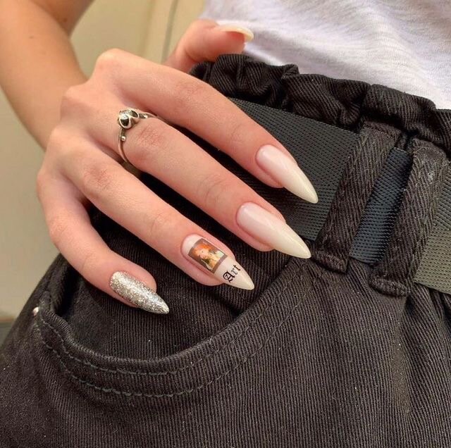 4 . Стилеты 😐: такую форму носить тяжело носить большинству девушек (среди молодых она более популярна чем среди тех которые в возрасте ) но как по мне эта самая красивая форма 😍 у этой формы тоже есть свои минусы : не очень удобно делать какие либо дела с такими ногтями , эта форма только для длинных ногтей ☺️