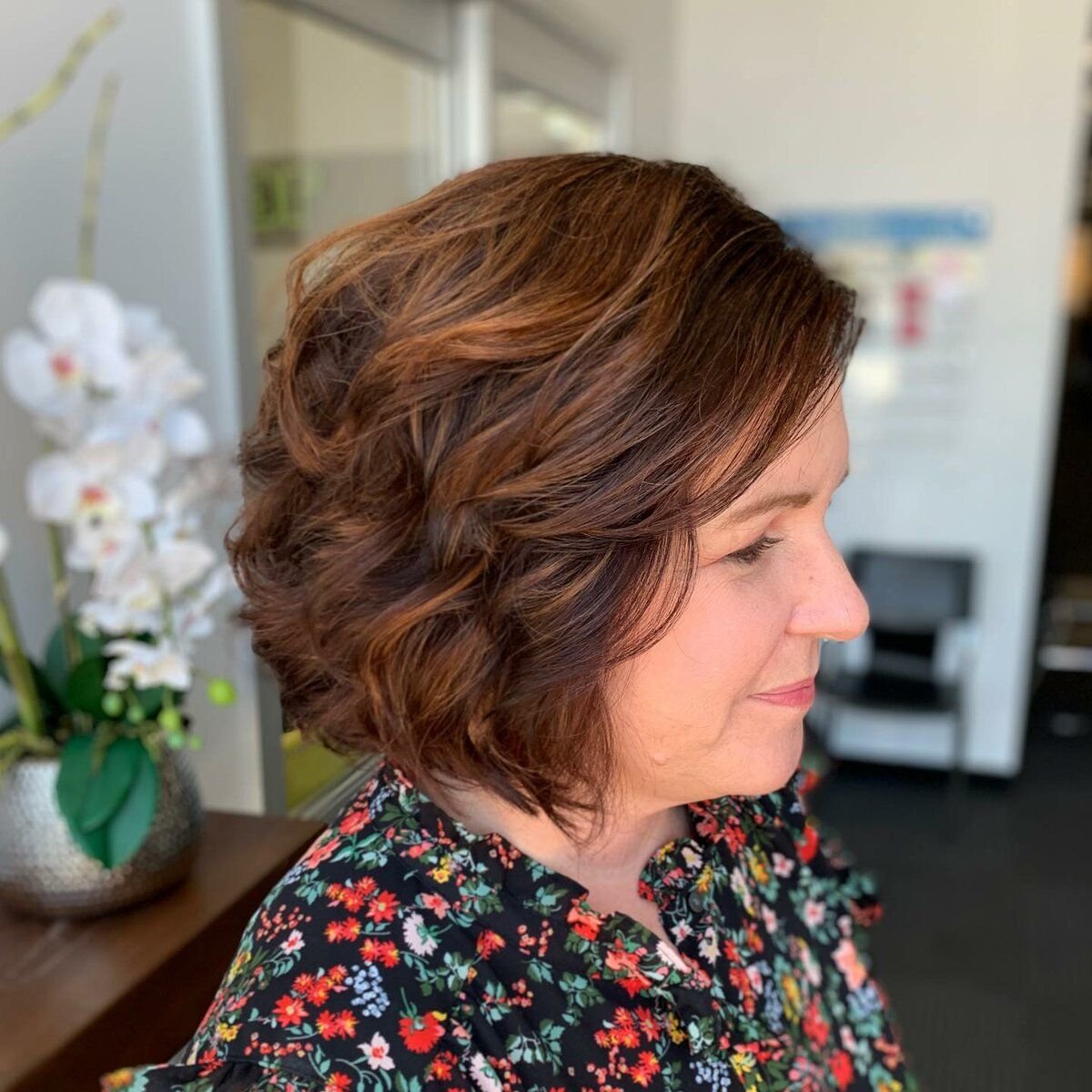 Медный цвет волос очень красивый, выразительный, он отлично подойдет как молодым девушкам, так и женщинам постарше. Легкие блики эффектно смотрятся на волосах, мелирование делает стрижку более динамичной.