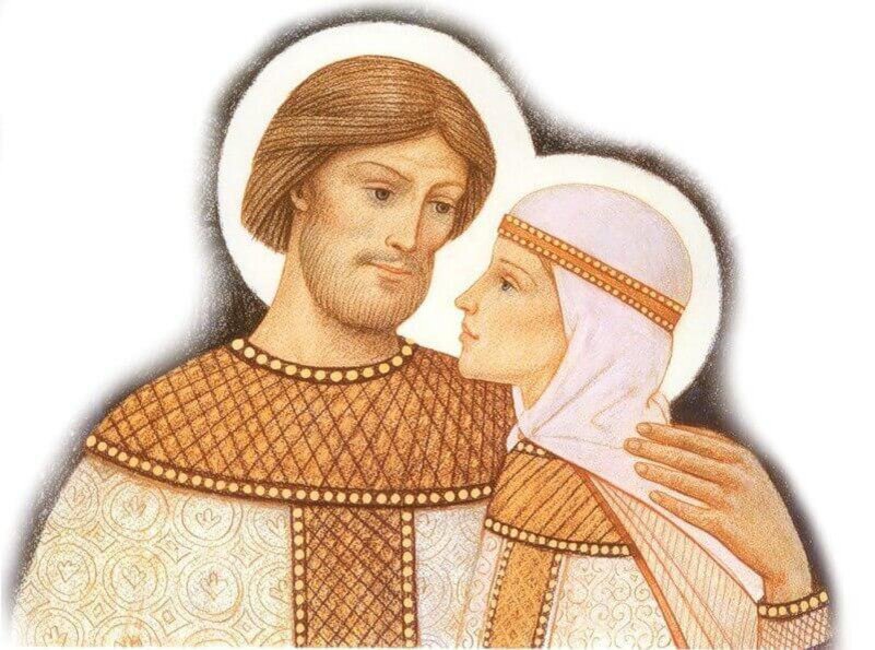 Один из самых ранних и почитаемых примеров — союз князя Петра и простой крестьянки Февронии. Согласно житию, бояре не захотели подчиняться «дочери древолазца» (пасечника) и изгнали её из города. Князь Пётр, не раздумывая, последовал за любимой женой, предпочтя семейное счастье власти. Лишь после просьб раскаявшихся горожан супруги вернулись в Муром, и Феврония, вопреки всем сословным барьерам, стала княгиней. Их история стала символом супружеской верности.