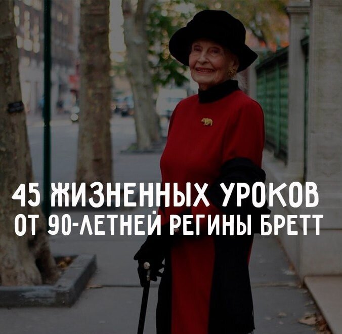 Источник статьи: Регина Бретт в свои 90 лет составила 45 уроков, которые преподала жизнь..