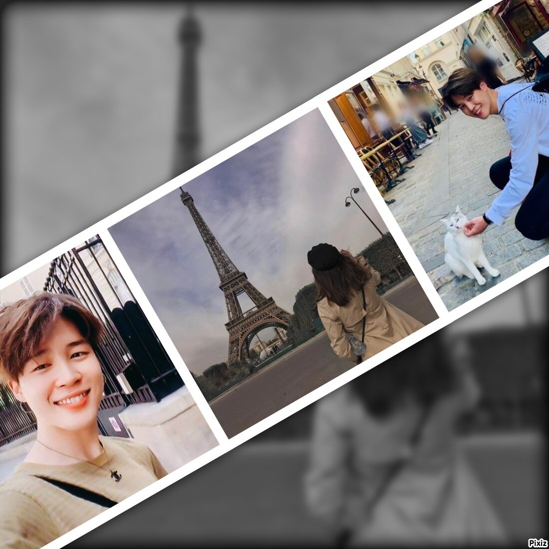 Покинув уютное кафе, мы с Чимином отправились к главной достопримечательности города — Эйфелевой башне. Никто из нас раньше на ней не бывал, и внесезонная тишина делала этот момент особенным. Путь, который по карте занимал полчаса, растянулся почти на час: Чимин то и дело останавливался, чтобы запечатлеть на камеру улочки, здания, моменты. Он снимал не для соцсетей, а для памяти, создавая личный архив нашего дня.