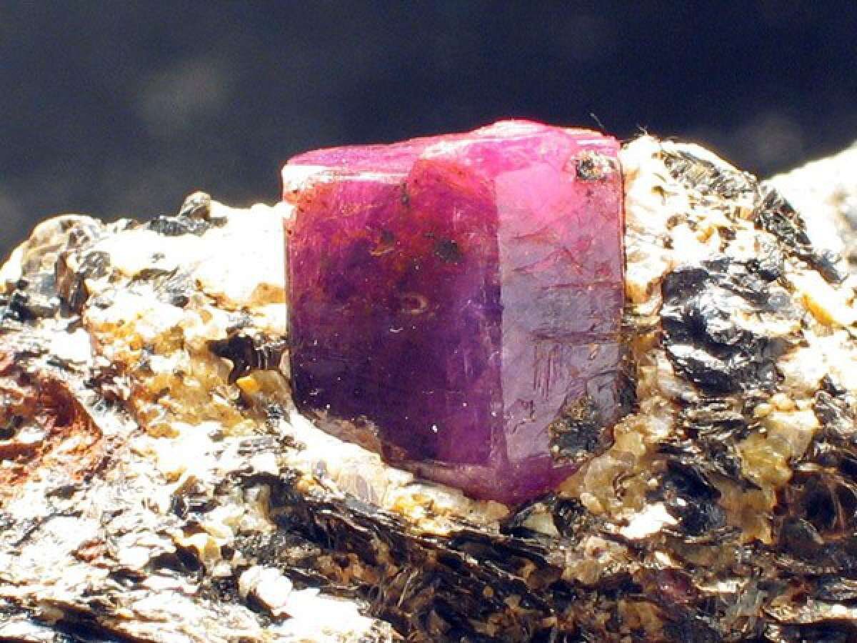Рубин, Al2O3 — минерал, разновидность корунда, относится к классу оксидов, тригональная сингония. Твёрдость — 9 по шкале Мооса, плотность 3,97—4,05 г/см3, подробнее см. корунд. Обладает оптической анизотропией. От красной шпинели отличим по форме кристаллов, в иных случаях — с большим трудом, например под микроскопом. Красную окраску придаёт примесь хрома. Красные корунды называются рубинами, синие — сапфирами. Светлоокрашенные сапфиры или бесцветный корунд ювелирного качества носит название лейкосапфир. «Звёздчатые» разновидности рубина и сапфира с хорошо выраженным эффектом астеризма обрабатываются в виде кабошона.