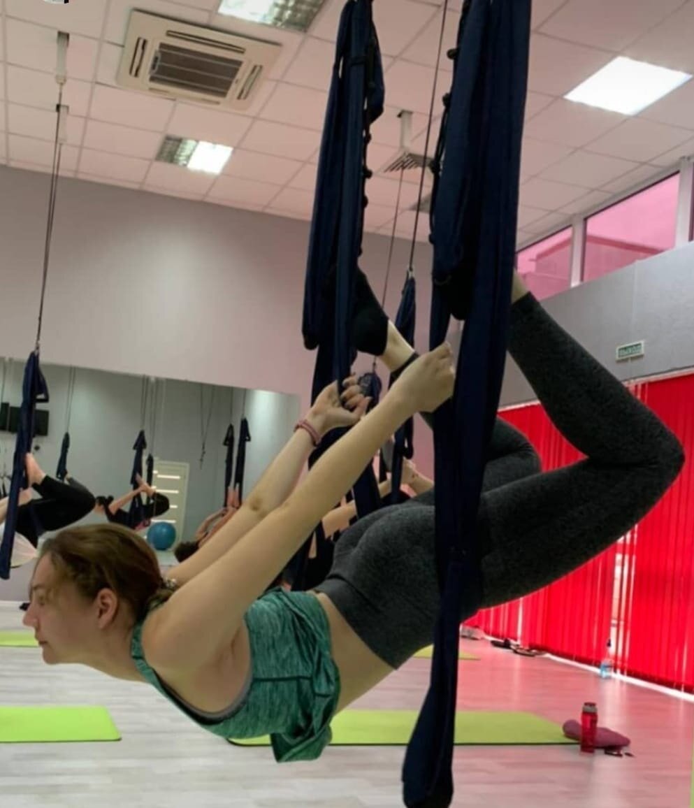 И совсем недавно, в октябре прошлого года я снова приобрела абонемент в уже знакомый зал. Решительным моментом в покупке для меня стало то, что там стали преподавать йогу в гамаках.