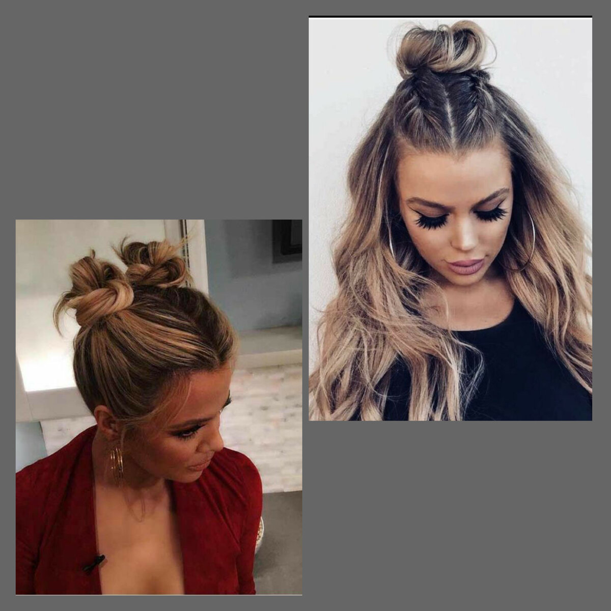 1. Небрежные или не аккуратные пучки. Они выглядят очень мило и симпатично. Можно делать несколько пучков либо на полураспущенные волосы, это выглядит довольно интересно. Конечно же эта прическа подойдёт в школу либо на прогулку, но никак не на работу.
