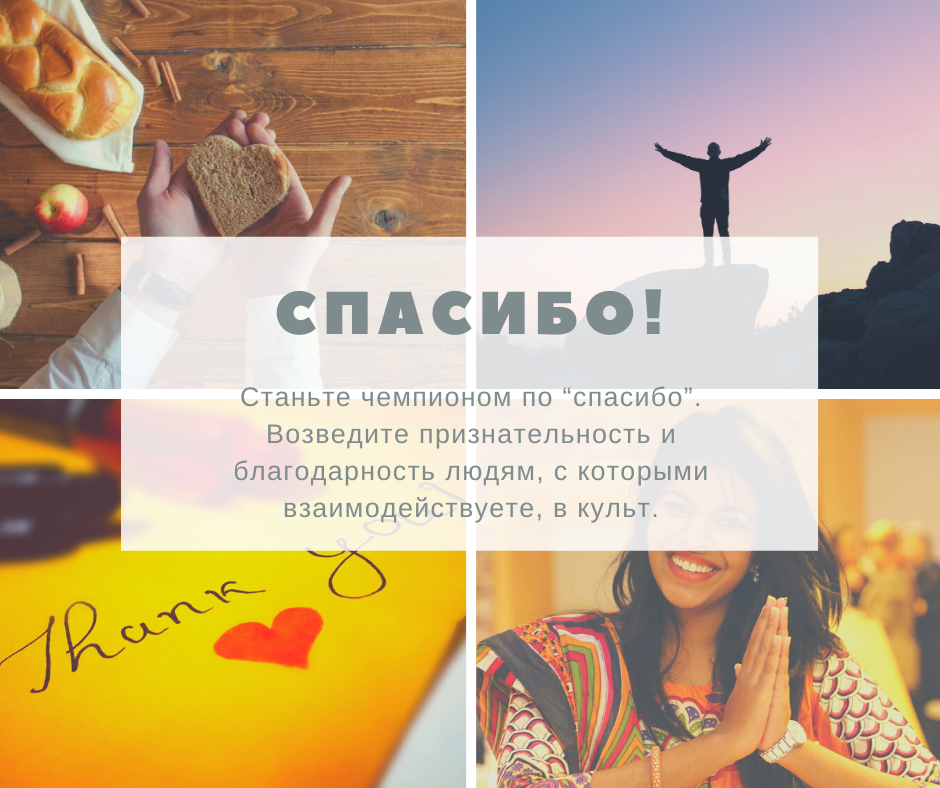 Лично я стремлюсь стать чемпионом по благодарности и возвожу искреннее признание в культ общения. Слова «благодарю» и «спасибо», сказанные осознанно, действительно способны творить чудеса в наших повседневных отношениях.